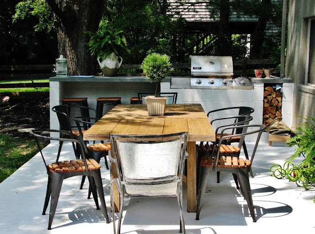 {We got the patio set at Lucketts for a steal but it came with ill-fitting cushions... I immediately replaced them with NEW slightly-less-ill-fitting cushions that will hold us over for a couple of years until we feel like springing for new custom ones.)